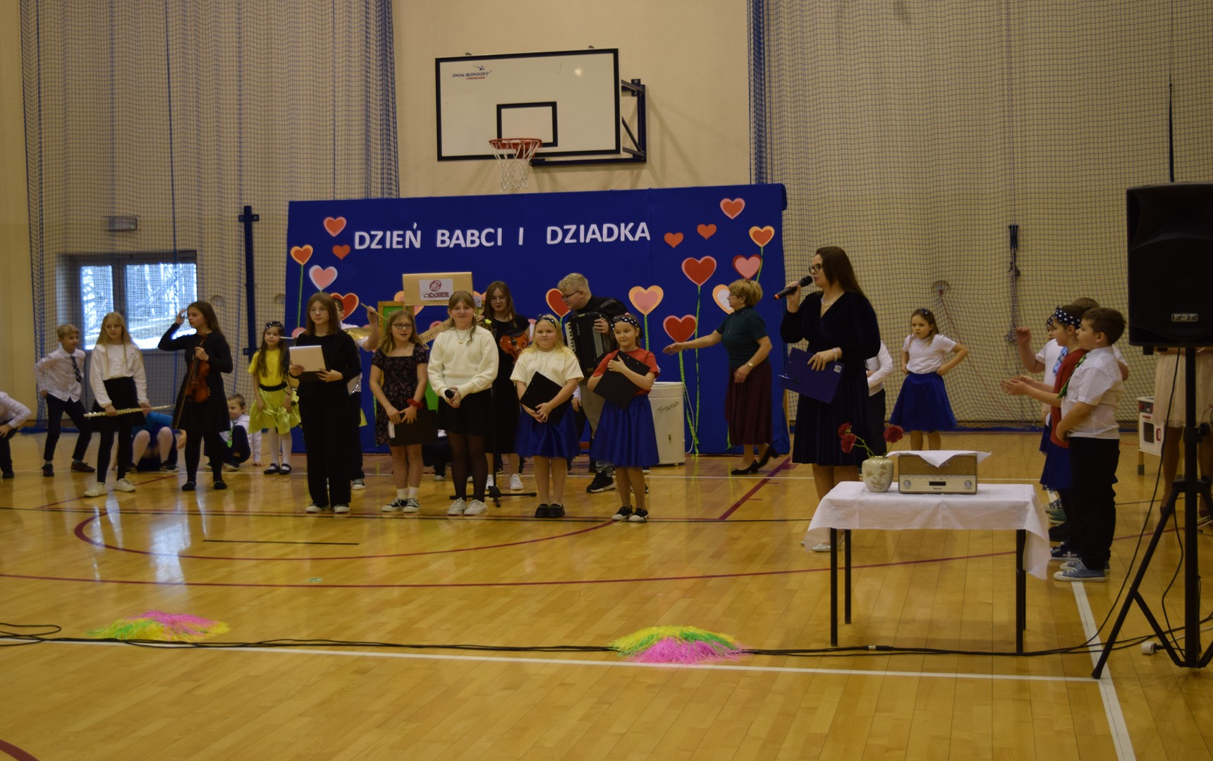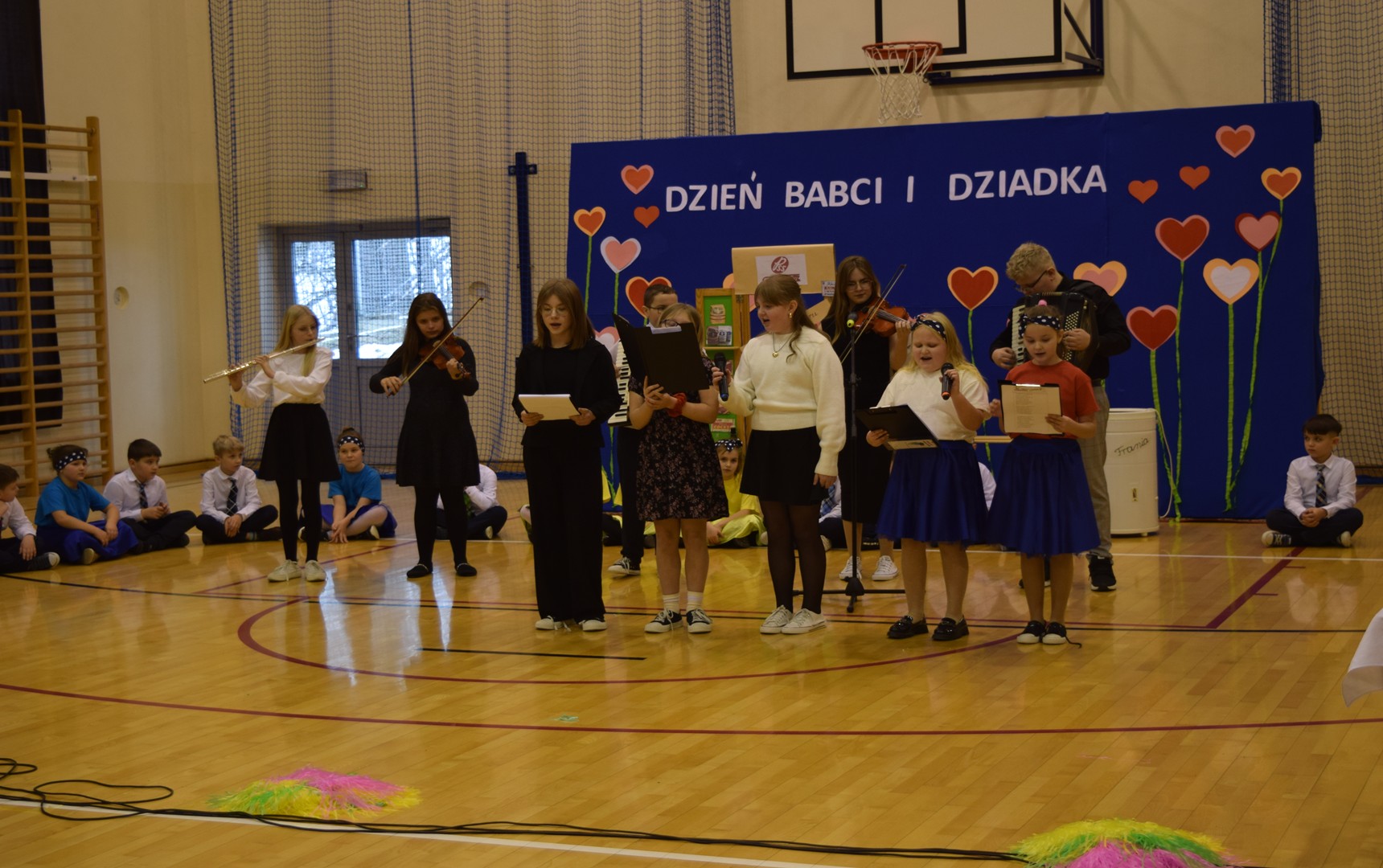 Podczas wydarzenia wystąpiły dzieci z klas 0–3, prezentując bogaty program artystyczny przygotowany specjalnie dla swoich dziadków. Publiczność mogła podziwiać recytacje wierszy, występy wokalne oraz taneczne. Nie zabrakło również humorystycznych inscenizacji, które wywołały wiele uśmiechów i radości wśród zaproszonych gości.