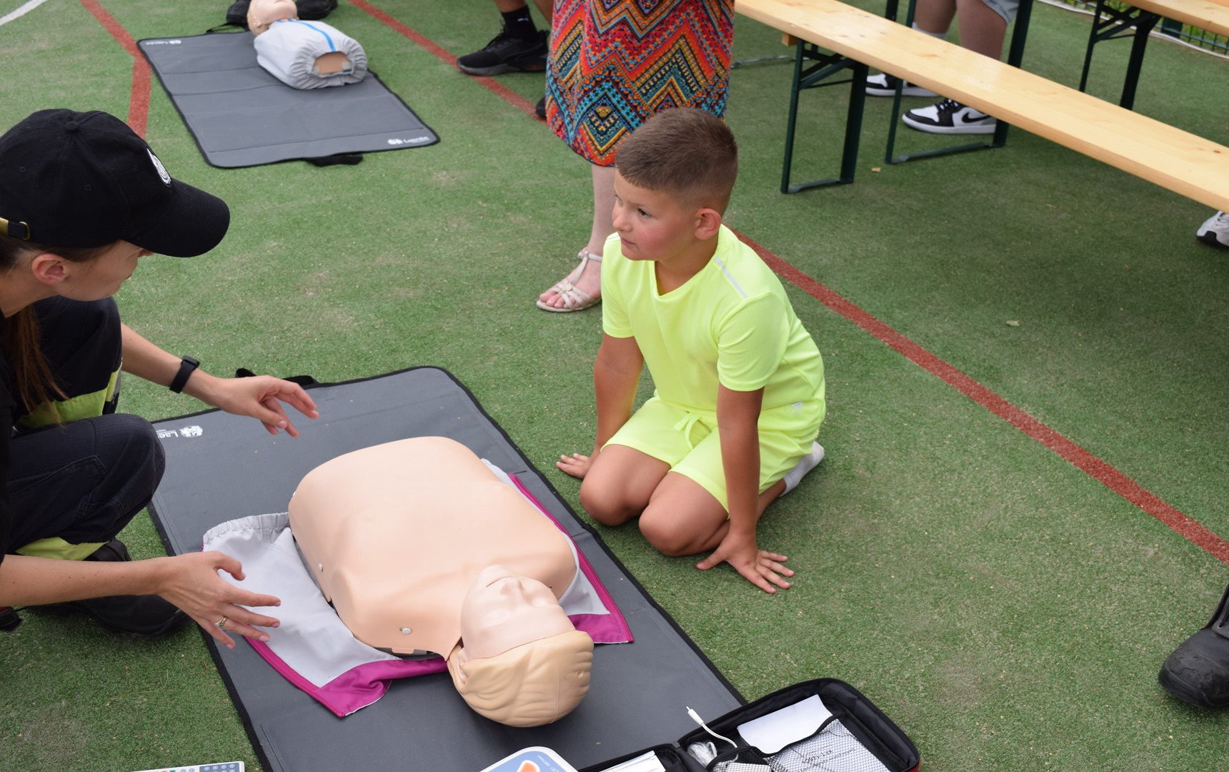 30 sierpnia na boisku sportowym odbył się piknik pod hasłem „Mały Ratownik”. Wydarzenie było wyjątkową okazją, aby dzieci oraz mieszkańcy naszej wsi poznali zasady udzielania pierwszej pomocy oraz nauczyli się korzystania z AED – automatycznego defibrylatora zewnętrznego. Urządzenie to już wkrótce zostanie zamontowane na budynku szkoły i będzie ogólnodostępne dla wszystkich mieszkańców Bruśnika. Uczestnicy mieli możliwość zdobycia praktycznej wiedzy i umiejętności, które w przyszłości mogą uratować ludzkie życie. Serdecznie dziękujemy wszystkim, którzy zaangażowali się w organizację tego wydarzenia oraz wszystkim uczestnikom za obecność i wspólną zabawę.