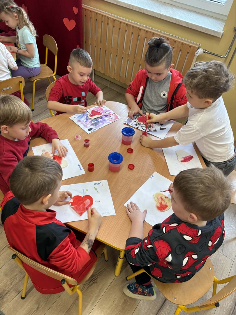 Zajęcia walentynkowe w przedszkolu upłynęły w radosnej i serdecznej atmosferze. Dzieci dowiedziały się, czym są walentynki oraz dlaczego 14 lutego okazujemy sobie życzliwość, sympatię i przyjaźń. Rozmawialiśmy o tym, jak można okazywać dobre uczucia na co dzień – poprzez miłe słowa, pomoc kolegom i koleżankom oraz wspólną zabawę.