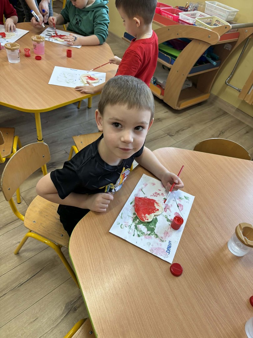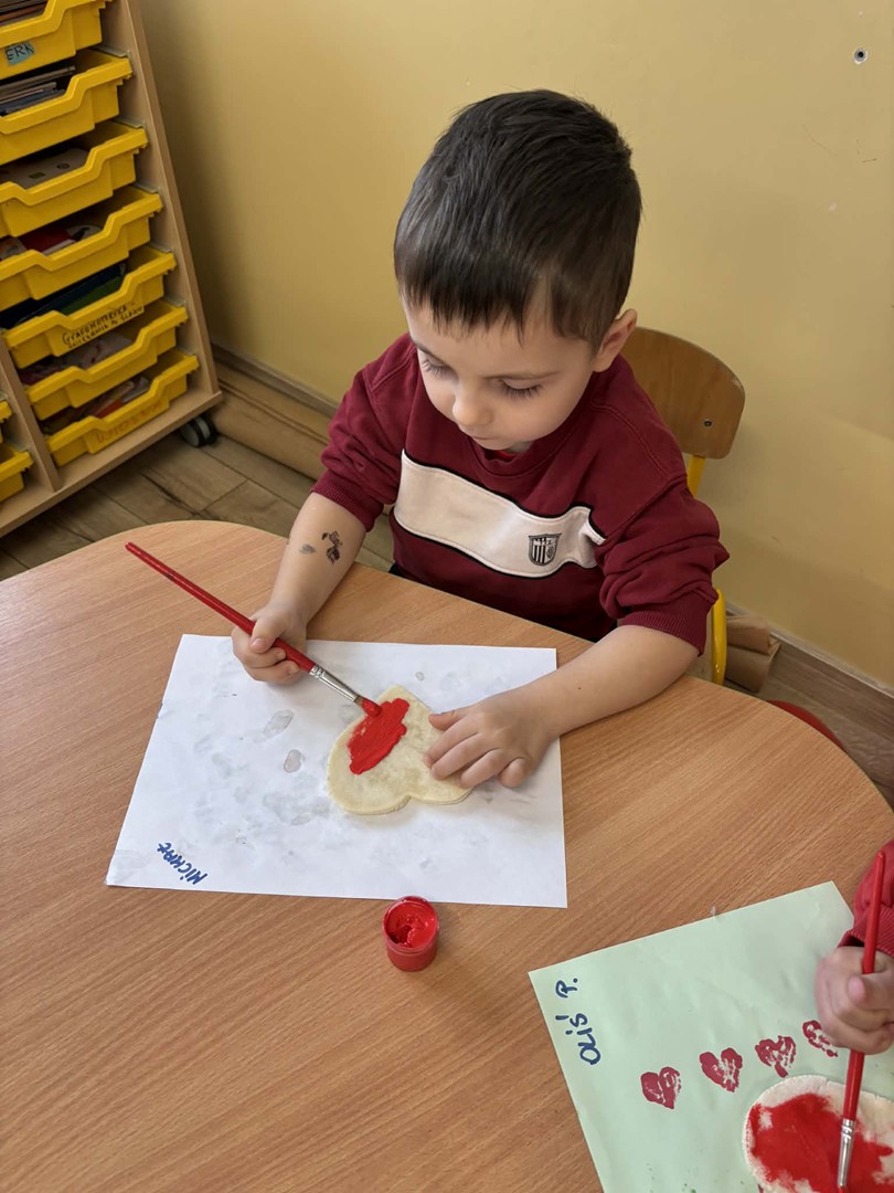 W części artystycznej przedszkolaki wykonały czerwone serduszka walentynkowe z masy solnej malowane farbami. Dzieci rozwijały swoją kreatywność oraz sprawność manualną.