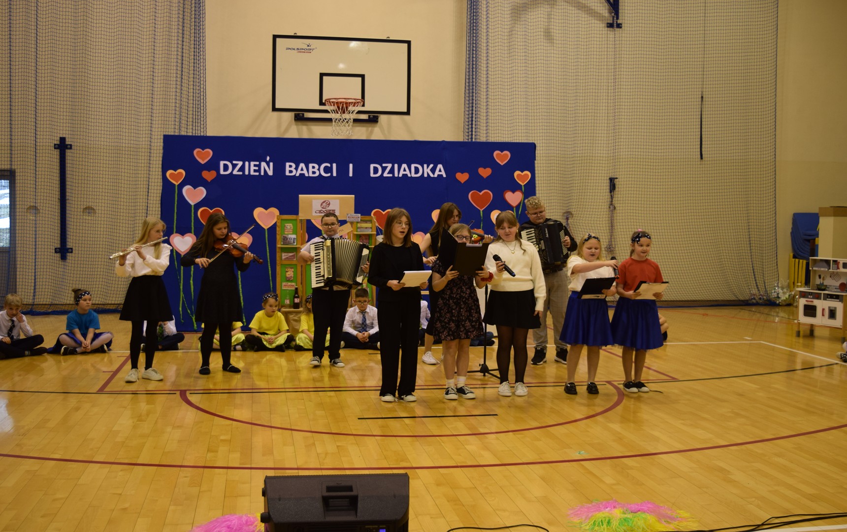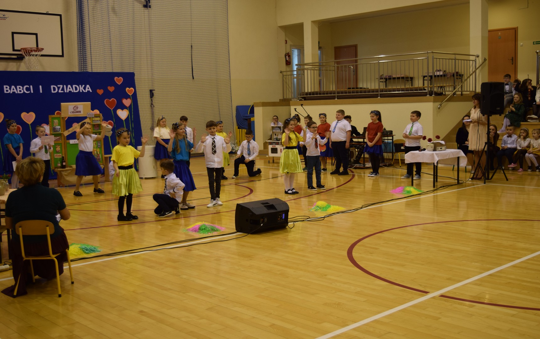 Podczas wydarzenia wystąpiły dzieci z klas 0–3, prezentując bogaty program artystyczny przygotowany specjalnie dla swoich dziadków. Publiczność mogła podziwiać recytacje wierszy, występy wokalne oraz taneczne. Nie zabrakło również humorystycznych inscenizacji, które wywołały wiele uśmiechów i radości wśród zaproszonych gości.